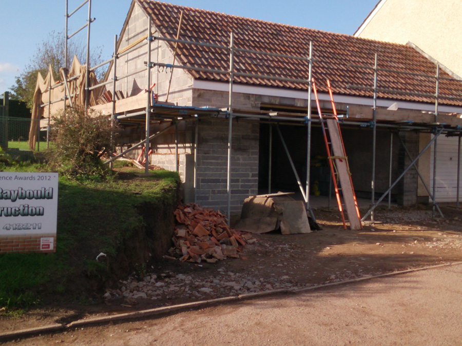This garage extension project in Taunton provided a large double garage to be built onto an existing garage. Extensive excavation was required to set this garage into the site, and the existing garage was refurbished to improve the overall appearance of the building, once finished.