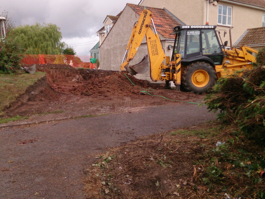 This garage extension project in Taunton provided a large double garage to be built onto an existing garage. Extensive excavation was required to set this garage into the site, and the existing garage was refurbished to improve the overall appearance of the building, once finished.
